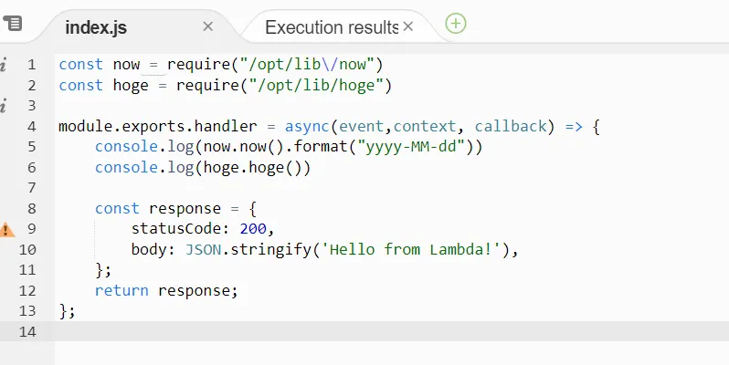 レイヤー をテストするために、テスト用の Lambda 関数を作成しました。
